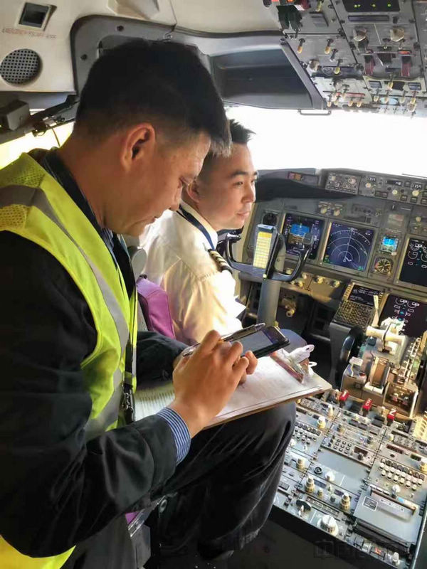 11月13日9時,北京首都機場機坪。民航飛標監察員王新宇和同事正在國航CA1433航班上執行關于飛行人員執照、各項機載記錄、應急物品擺放等的監察任務。在狹小的駕駛艙中,王新宇和同事嚴格按照民航規章標準進行檢查,認真地在民航飛行標準監督管理系統(FSOP)檢查工作單上記錄。