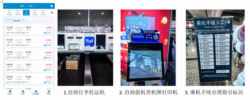二是以數字平臺助力實現標識多場景應用。《標識》基于民航局清算中心“國內通程航班服務管理平臺”和中國航信“民航中轉旅客服務平臺”數字化平臺技術支撐,構建多主體、多場景以及線上線下完整統一的標識展示體系,并為一線地面服務保障提供指引。《標識》線上應用場景主要包括航空公司官網、App(含小程序、觸屏端)以及航空銷售網絡平臺,線下應用場景主要包括航站樓人工及自助值機柜臺、中轉服務柜臺、登機廊橋等,貫穿國內通程航班旅客購票、值機、托運、中轉等出行全流程。