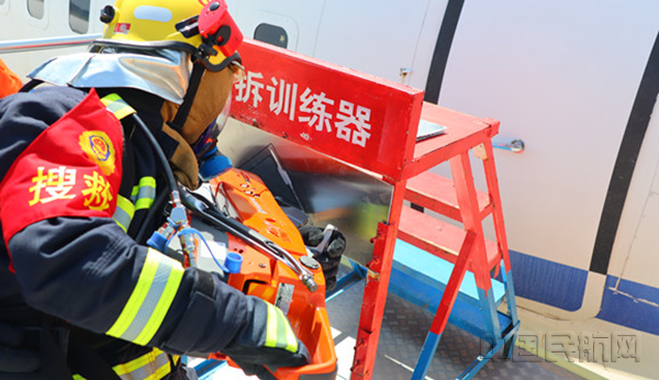消防員在比賽中進行模擬航空器破拆操作(本文圖片均由葉長青/攝)