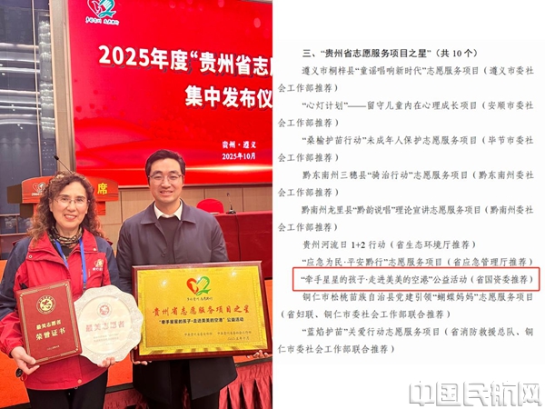 中國(guó)民航網(wǎng) 通訊員王紅 報(bào)道:近日,貴陽(yáng)機(jī)場(chǎng)股份公司“牽手星星的孩子·走進(jìn)美美的空港”公益活動(dòng)經(jīng)貴州省國(guó)資委推薦,在貴州省委宣傳部、貴州省委社會(huì)工作部共同組織開(kāi)展的2025年度“貴州省志愿服務(wù)之星”先進(jìn)典型宣傳選樹(shù)活動(dòng)中榮獲“貴州省志愿服務(wù)項(xiàng)目之星”稱(chēng)號(hào)。