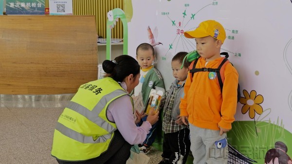 漢中機場員工保障首乘兒童旅客(民航西北局供圖)