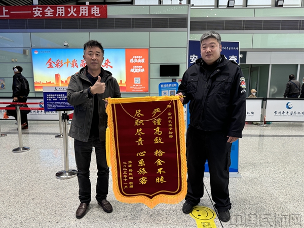 楊先生對安檢人員高效負責的工作作風表示高度贊賞。他特意定制錦旗,再次來到機場,親手將其交到安檢人員手中。旅客檢查室負責人表示,“保障旅客安全是我們的職責,守護旅客財產同樣是我們應盡的義務。這面錦旗既是對安檢工作的肯定,也是一種溫暖的激勵。我們將繼續努力,為每一位旅客提供更加安全、溫馨的出行體驗。”