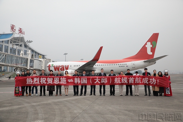 據悉,該航線采用波音737-800機型執飛,將在12月共計執行七班往返航班。具體時刻(均為當地時間)及班次為:12月2日、6號、14號、18號執行TW697大邱08:25—恩施12:25,TW698恩施13:25—大邱16:25;12月10日、22號、26號執行TW697大邱09:55—恩施12:55,TW698恩施14:00—大邱18:00。