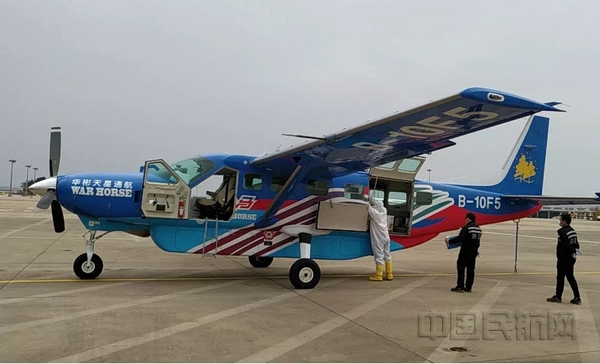 第二天天一亮,一架戰馬涂裝的塞斯納208B固定翼飛機在裝滿救援運送物資后,準時從密云機場起飛,中午時分飛機落地武漢天河機場并順利完成物資卸貨交付。
