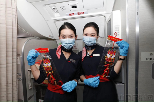 “今天是春運第一天,C919國產大飛機首度服務春運。我們乘坐C919,從上海到成都,從黃河路到寬窄巷子,從繁花之地到大熊貓家園,讓我們和C919開啟一段新春旅程。”伴隨著悠揚的客艙廣播聲,10:21,第二班MU9189上海虹橋至成都天府的航班順利啟航。航班乘務組還為機上的老年旅客和小朋友們送上龍年“福”字和新春掛件,祝愿老人們在新的一年中身體健康、福氣滿滿,祝小朋友們龍騰虎躍、茁壯成長。