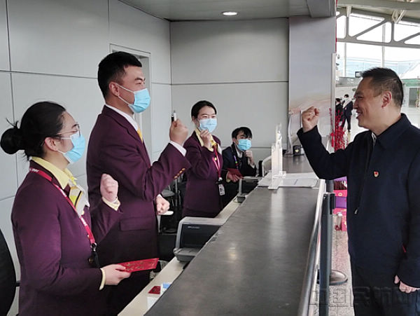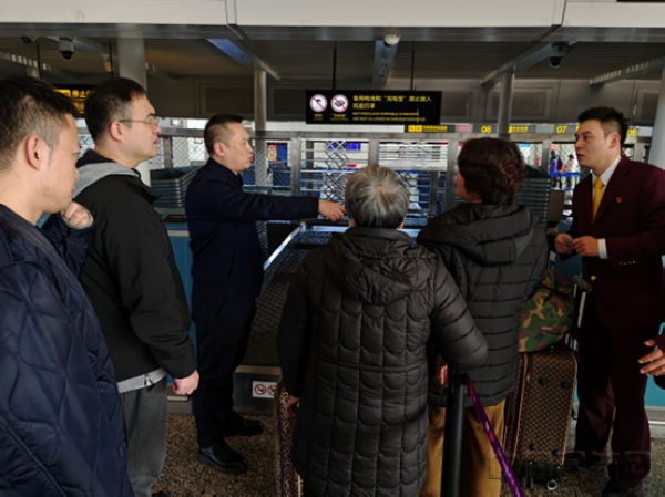 按照計劃,待十多個早始發航班依次準備完畢平安離港后,就到了他去候機樓給售票和地服工作人員們拜年的時候。上午9點45分左右,他帶領幾名春節值班干部去往重慶江北國際機場T2航站樓西部航空售票柜臺,一行人剛進到航站樓時,就遠遠地看到兩名旅客正在和售票員溝通著什么,售票員站立著,看起來不像是平常的購票狀態,多年的從業經歷讓他敏感地意識到,可能是旅客遇到了什么難處。