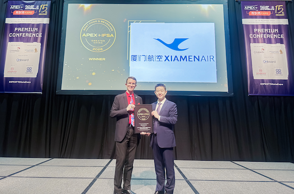 《中國(guó)民航報(bào)》、中國(guó)民航網(wǎng) 記者賈璞瑜 通訊員陳倩楠 報(bào)道:11月12日,世界航空旅客體驗(yàn)協(xié)會(huì)(APEX)亞洲峰會(huì)在新加坡舉辦,年度頒獎(jiǎng)典禮上重磅揭曉多項(xiàng)行業(yè)殊榮。廈航憑借卓越的機(jī)上餐飲服務(wù),斬獲APEX 2026“大中華區(qū)最佳餐食及酒水獎(jiǎng)”,成為中國(guó)唯一獲獎(jiǎng)航空公司。