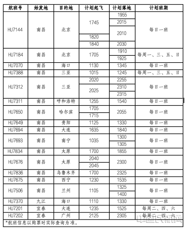 新航季中,海南航空計劃在江西省內南昌、九江和宜春三地共運營15條國內航線,通達北京、海口、三亞、廣州、南寧、大連、烏魯木齊、西寧、呼和浩特等國內熱門公商務及旅游城市,每周計劃執行出港航班112班。后續,海南航空將根據市場需求適時增投運力,旅客可通過海南航空官網及APP、微信公眾號及小程序、服務熱線95339、各直屬售票處及授權代理查詢及購票。
