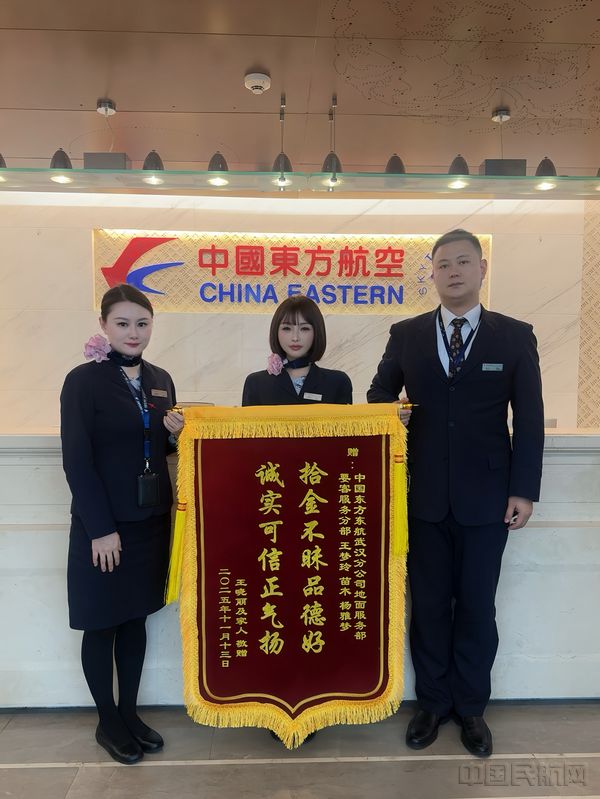 《中國民航報》、中國民航網 記者錢擘 報道:一面來自千里之外的錦旗,近日送到了東航武漢公司地服部,錦旗上的“拾金不昧品德好,誠實可信正氣揚”十四個字,承載著旅客的誠摯謝意。
