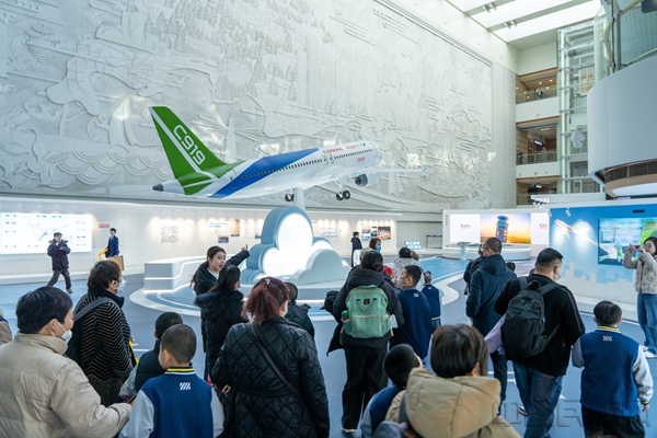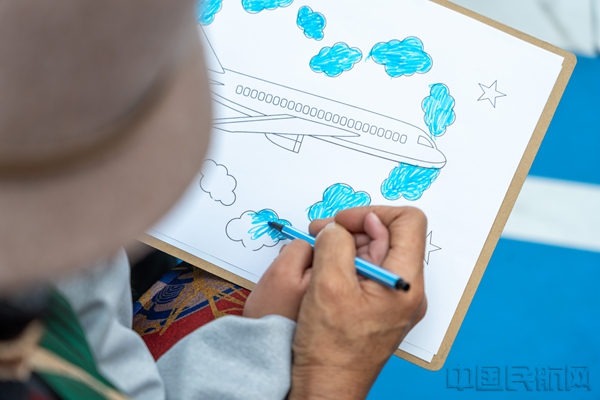 小學員們在C919國產大飛機模型前執筆描繪,讓心中飛行的夢想在色彩中綻放,那是他們與眾不同的藍天故事,更是對未來最純真的期許。