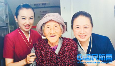 5月19日,南航河南乘務(wù)組在CZ6236航班上熱情地為百歲老人提供貼心服務(wù),贏得老人及家屬的稱贊。下機(jī)時(shí),老人高興地說(shuō):“我要和小美女們合影,回來(lái)時(shí)還要坐你們的飛機(jī)。”圖片作者:尹珊珊、李雪梅(南航河南公司)
