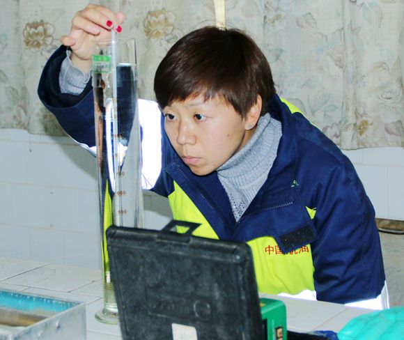 每年4、5月份,實驗室人員需要外出校驗流量計。由于2013年化驗室只有2名員工,此期間的化驗工作就李軍莉1人負責,不論是油罐內油品檢驗,還是現場油品質量監控檢查,以及油品計量相關作業事項,雖然都是她一人承擔,但所涉及的工作都能及時、較好地完成。了解計量化驗工作人可能知道,它對于時間的要求特別苛刻,來了槽車,不管你在干嘛,都不能耽誤了接卸;需要換罐,不管你在干嘛,都不能耽誤了發油;臨時接收了供應站的油樣,不管你在干嗎,都得第一時間做檢驗,李軍莉積極主動地承擔著一切,工作中搶著做多去做,沒有一絲怨言。