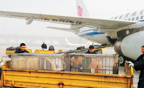 近日,江蘇常州機場迎來了兩位特殊的客人:大熊貓“六一”和“琪琪”。機場物流公司為保證大熊貓順利運輸,成立了專門的保障小組,前期多次與運送單位、航空公司進行溝通和協調,確定了運輸日期、航班安排等各項工作。(圖片作者:李華 常州機場)
