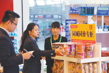 在“3·15”國際消費(fèi)者權(quán)益日到來之際,西寧機(jī)場堅(jiān)持真情服務(wù),開展“同城同價(jià)”活動(dòng),在航站樓設(shè)立了“同城同價(jià)”專柜,以與市區(qū)超市持平的價(jià)格出售速食食品、飲品等商品,讓旅客享受更多實(shí)惠。(圖片作者:李澤中 青海機(jī)場有限公司)