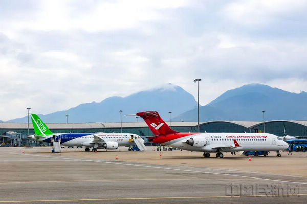 國(guó)產(chǎn)大型客機(jī)C919和國(guó)產(chǎn)支線客機(jī)ARJ21在香港國(guó)際機(jī)場(chǎng)進(jìn)行靜態(tài)展示