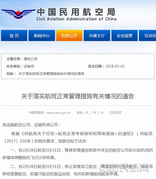 民航局停止受理多家中外航空公司新增航線航班申請
