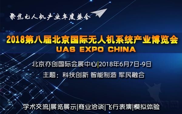中國民航網訊:為深入貫徹國家軍民深度融合發展戰略,積極落實國家提出的"新一代人工智能發展規劃",以"科技創新、智能制造、軍民融合"為主題,2018第八屆北京國際無人機系統產業博覽會UASEXPOCHINA將于6月7日-9日在北京亦創國際會展中心再度榮耀亮相,是集學術交流、展覽展示、商業洽談、飛行表演、模擬體驗于一體的高檔次、大規模、較權威的綜合性專業活動,對于促進我國無人機科技創新和轉型升級,全面推動航空航天和無人機系統產業發展將發揮重要的橋梁作用。