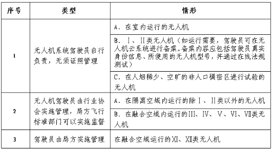 表2 民用無人機系統駕駛員分類管理要求明細表