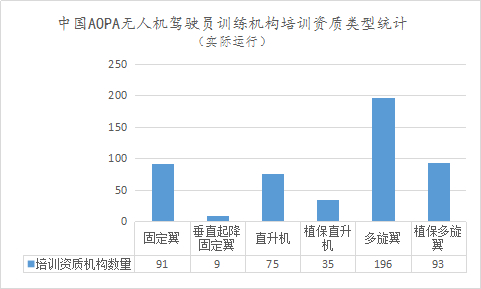表3 AOPA實際運行的無人機駕駛員訓練機構培訓資質類型統計(2018.01)